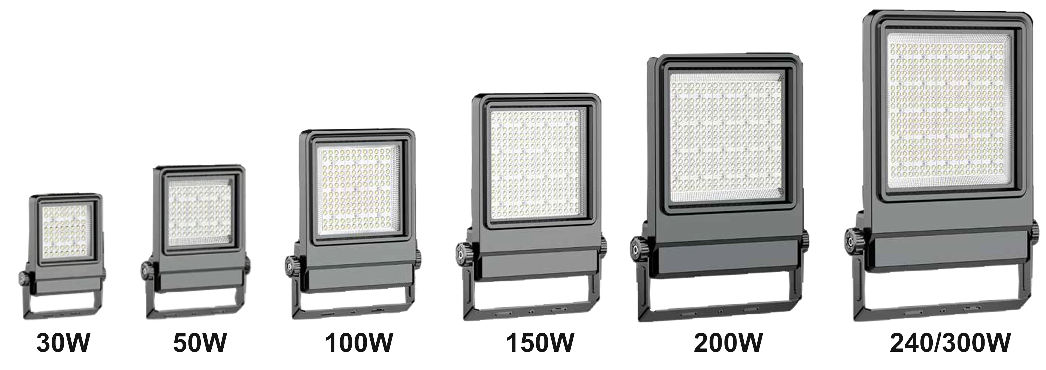 Offered in 10W to 300W Light efficiency up to 150lm/W Optical lighting distribution: 25°/45°/60°/90°/70*150° Die-casting technology by ADC12, excellent thermal management, reduce the temperature difference and ensure the lumen depreciation Tempered glass, Integrated Breather Valve: Balances The Internal & External Temperature and Humidity Offset bracket design, Racked Angle ±120° adjustable, Allows For Precise Installation Ingress Protection Rating: IP66 Options: 3CCT & 3Power Adjustable Options: PIR Sensor |